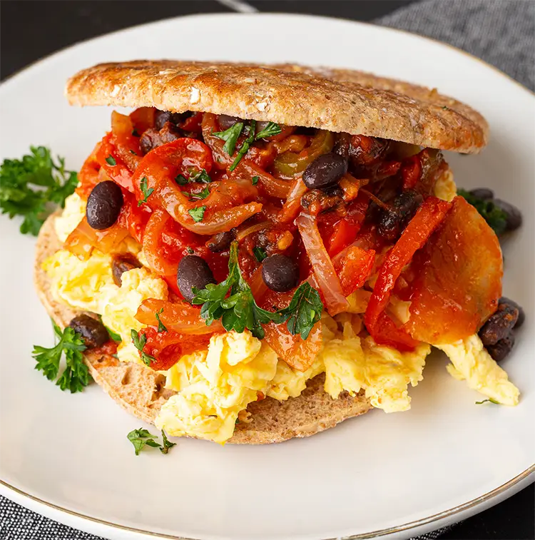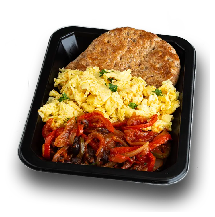 This delectable dish features perfectly scrambled eggs that are luxuriously layered on a zesty and vibrant Ranchero Sauce. Our Ranchero Sauce is made with ripe tomatoes, smoky chipotle peppers, aromatic onions, and a medley of savory spices, creating a flavorful and robust taste. Paired with the fluffy eggs and enclosed in a light and nutritious Whole Wheat thin bread. Experience the bold and satisfying combination.